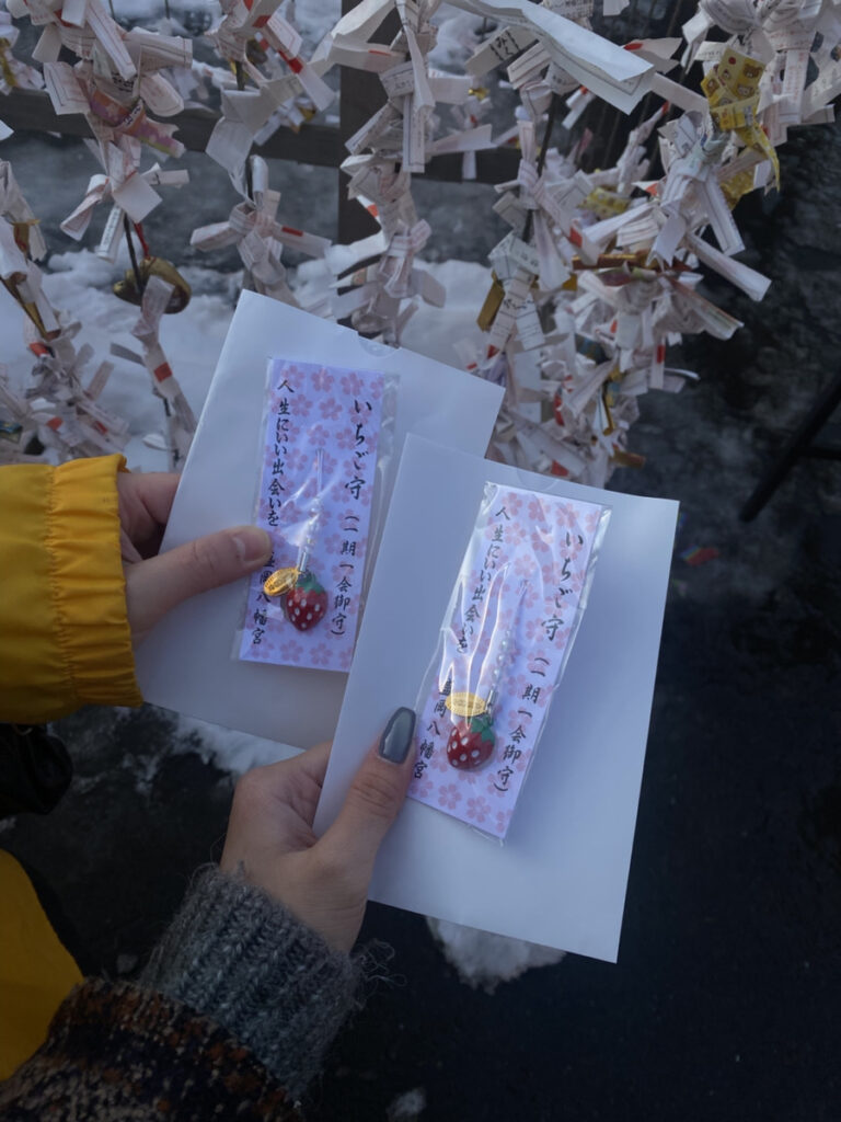 こちらはその日に友達とお揃いで買ったお守りです。完全にビジュ重視で選んだ可愛いお守り🍓
